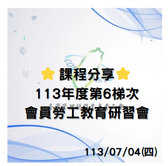 各位好朋友,好康報給大家! 本會受邀參加台中市總工會113年度第6梯勞工教育研習 … (繼續閱讀)