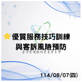 本課程將引導學員掌握服務原則,提升服務質感,並以實務演練,加強服務技巧,進一步達到客訴預防,降低顧客抱怨風險。